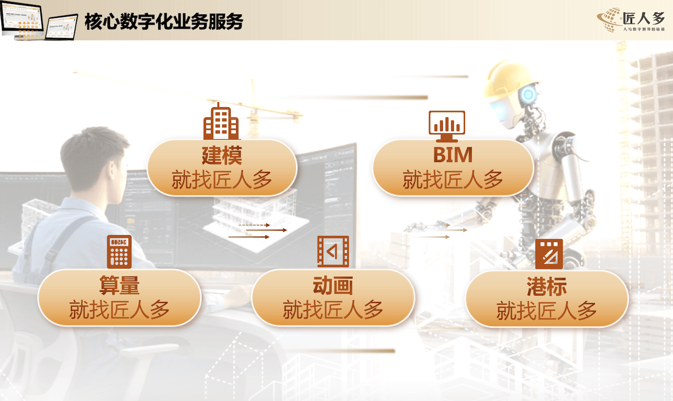 匠人多平台提供 BIM 全过程服务,涵盖从项目规划、设计、施工到运维的全生命周期。通过数字化技术整合建筑信息,实现项目各阶段的高效协同与精准管控。平台帮助客户优化设计方案,在设计阶段就通过 BIM 模型进行碰撞检测,提前发现设计中存在的问题,减少施工冲突,避免了施工过程中的返工和变更,从而控制成本与工期,提升项目整体质量与运维效率,助力建筑项目实现数字化、智能化管理。